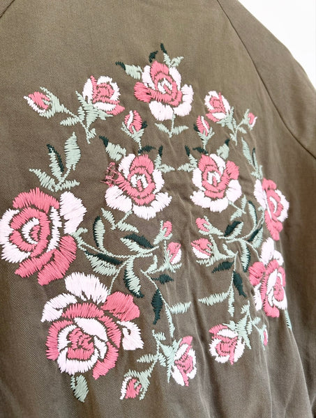 Excellent condition. Khaki green with beautiful flower embroidery